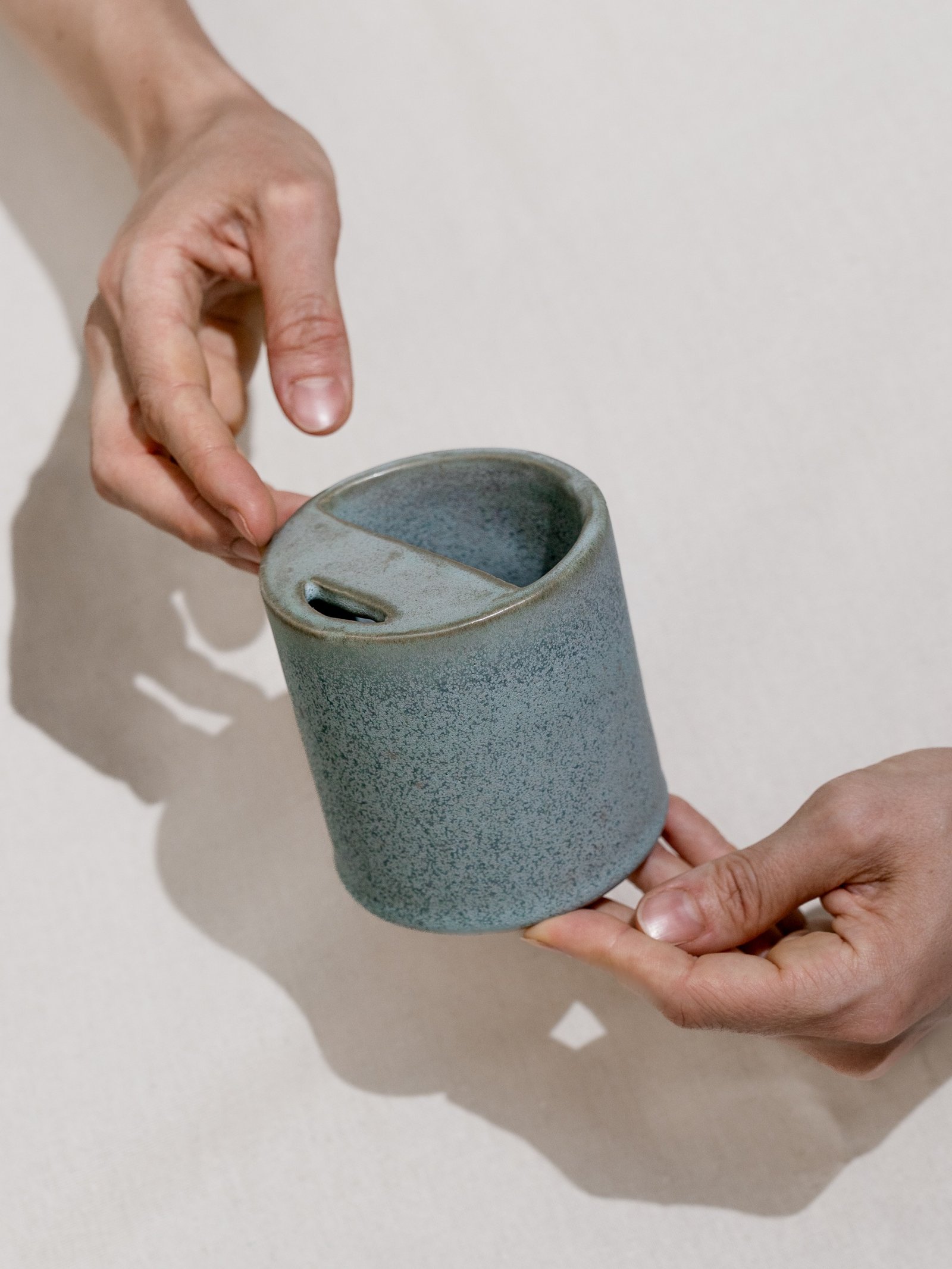O Copo Eco carrega na superfície a leveza das formas orgânicas — cada curva moldada à mão, cada ondulação única como o relevo da serra.